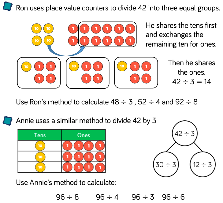Today, in maths, we are continuing with division. Have a go at the questions below, remembering that if you are unable to divide the 10’s equally, you can exchange them for 1’s. Let me know if you have any questions.