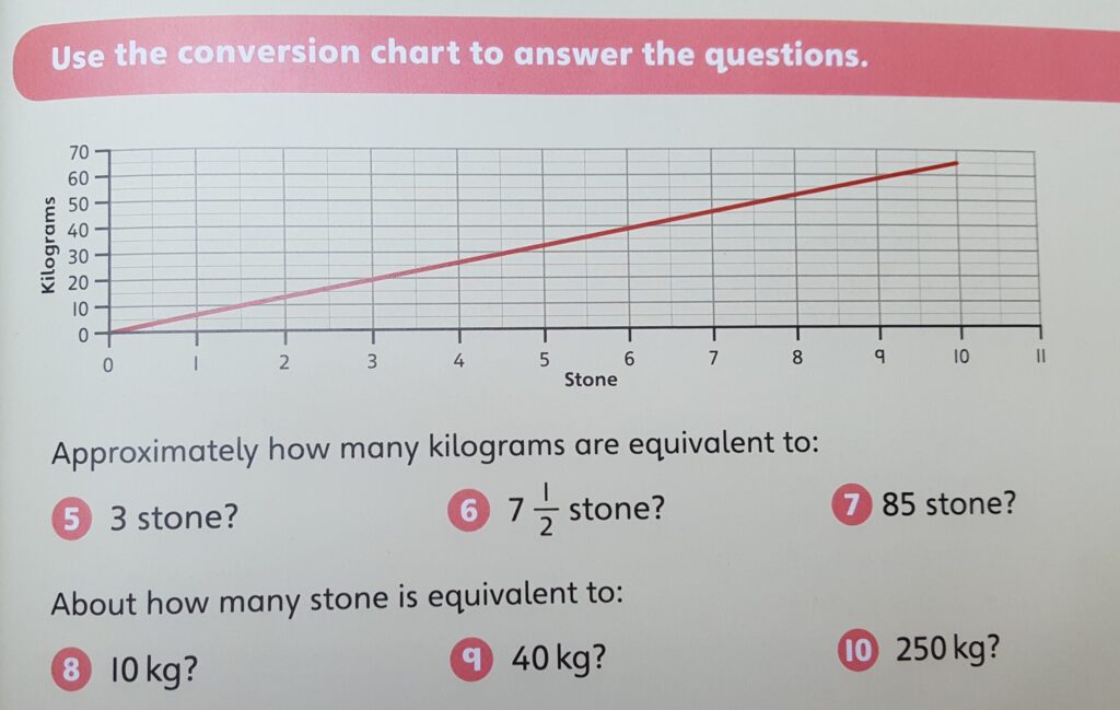 Today, we are going to look at a conversion chart. This type of line graph goes up in a straight line, allowing you to convert from one measure to another.