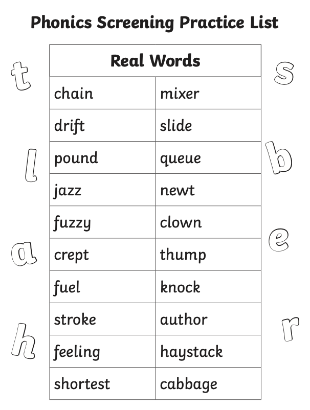 In Phonics there are some real and nonsense words to practise.