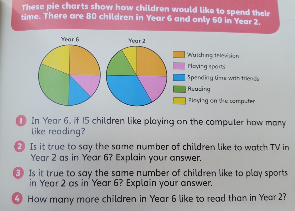 Today, we are going to look at pie charts. Remember these show a portion of a whole (like slices of a cake).