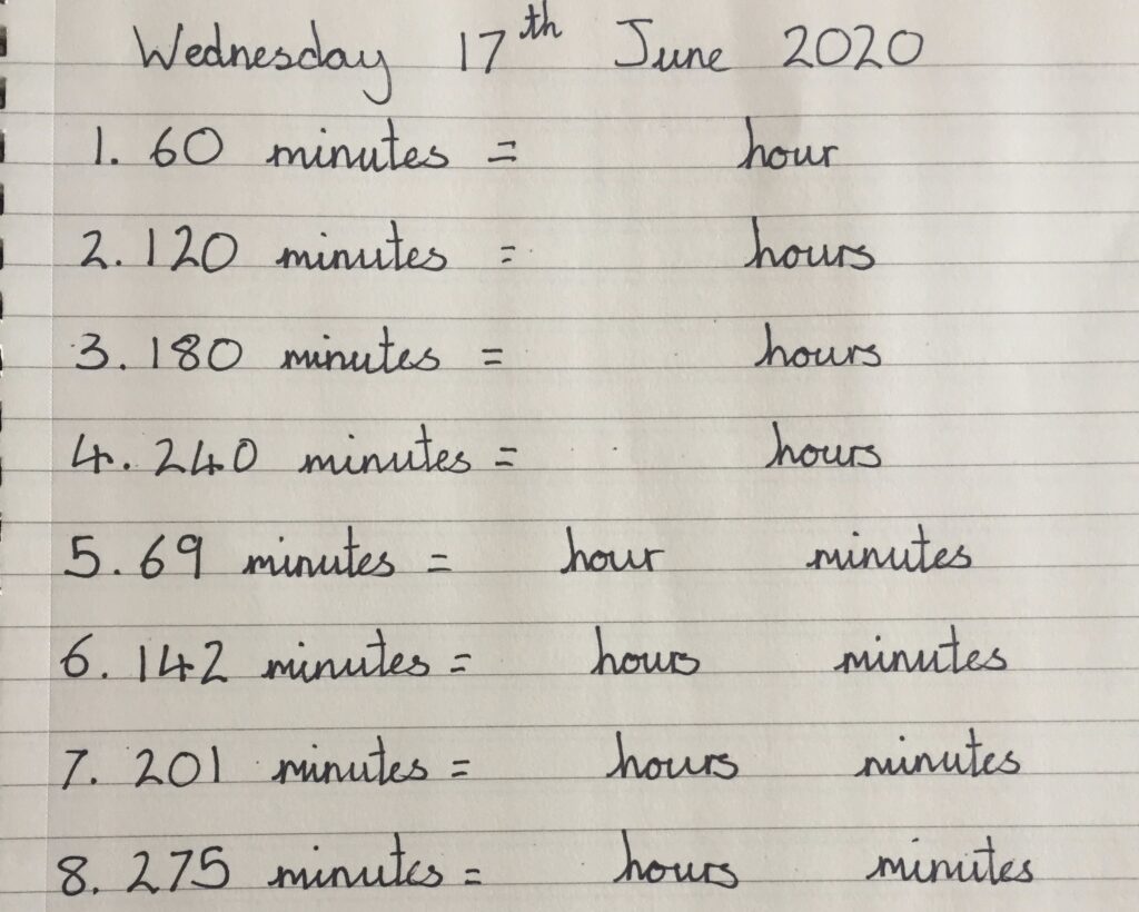 Today, in maths, we are going to be converting minutes into hours.